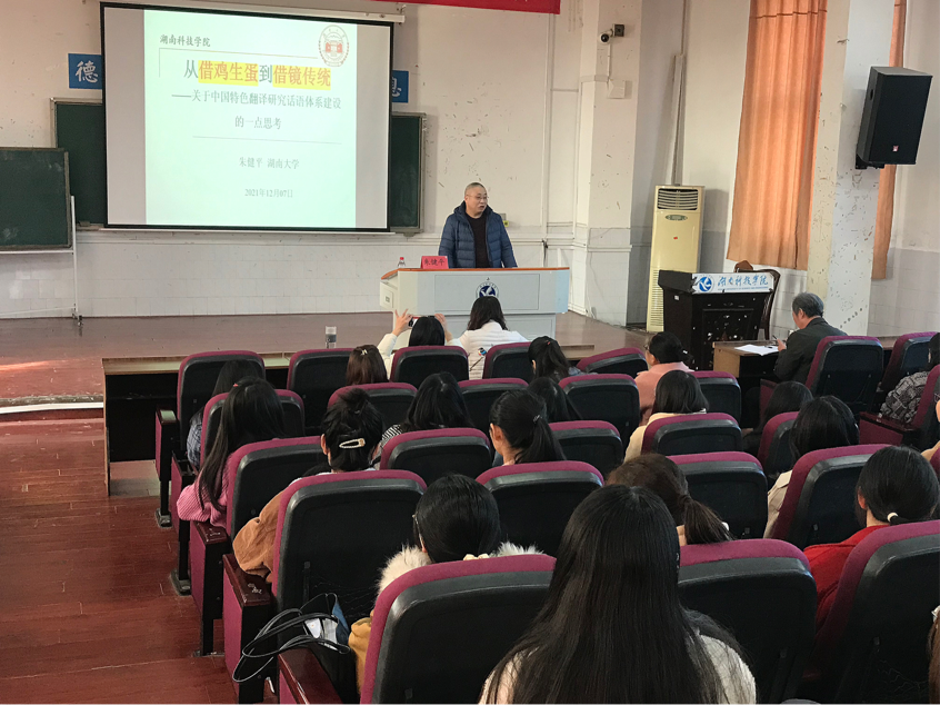 九州在线网站外国语学院院长欧华恩教授分别对两位教授的讲座致开场词,并分别对讲座做了精彩点评和总结。7日上午,朱健平教授开展了关于“从借鸡生蛋到借镜传统——关于中国特色翻译研究话语体系建设的一点思考”的专题讲座。朱健平教授对目前中国翻译研究话语产生的主要方式及构建中国特色翻译研究话语体系的必由之路进行了深入的阐释。建议在进一步大量吸收西方翻译研究乃至整个人文社科优秀成果的同时,更加重视借镜传统,从传统中汲取知识养分和思想资源,形成自己独特的翻译研究话语方式,构建更具独立性的中国特色翻译研究话语体系。