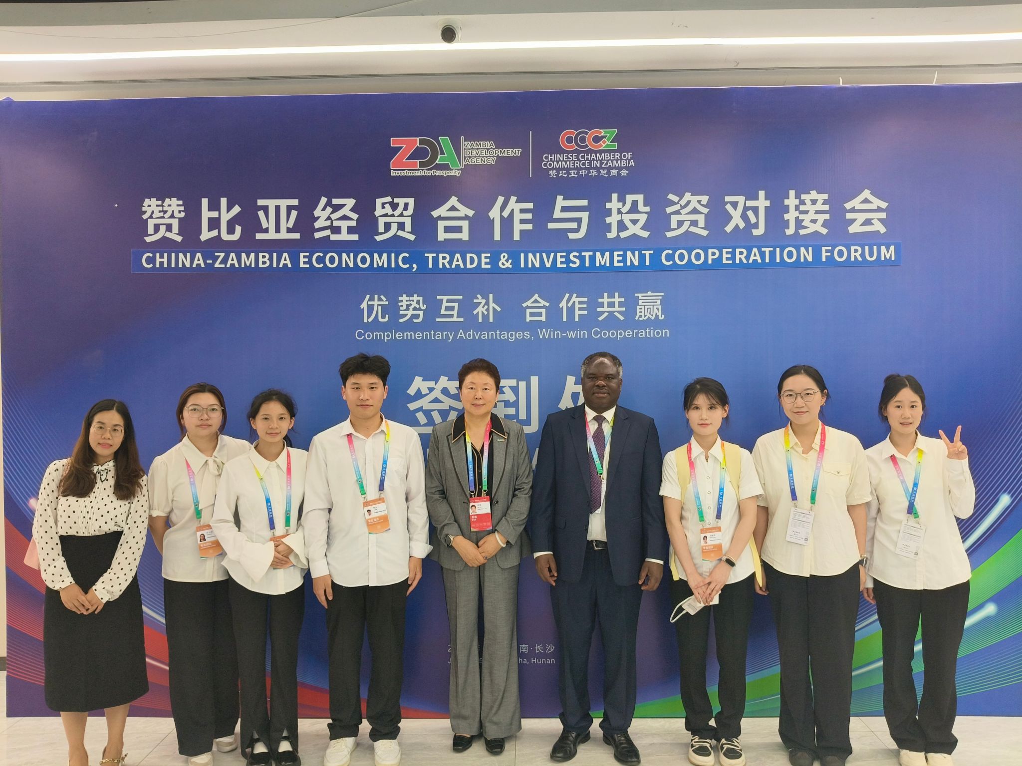 (通讯员 黄雅丽)6月12日至13日,九州在线网站外国语学院19名师生组成的专业团队,深度服务“湘商-中非经贸促进专场对接会”“赞比亚经贸合作与投资对接会”等会议,以卓越的语言能力和跨文化服务水准赢得中外嘉宾高度赞誉,成为深化中非交流的“关键纽带”。