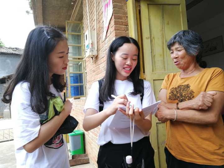 志愿者分为四个小组,深入当地民居,以问卷形式展开田野调查。即使天气炎热,志愿者们依旧挨家挨户地访问当地居民,顺利完成了120余份问卷调查。对于志愿者的调查,村民们热情回应,大部分村民表示很了解当地的生态文明建设以及旅游业对当地环境的影响等问题。走访之后,志愿者根据问卷和谈话记录等第一手资料整理出了详细的调研报告。