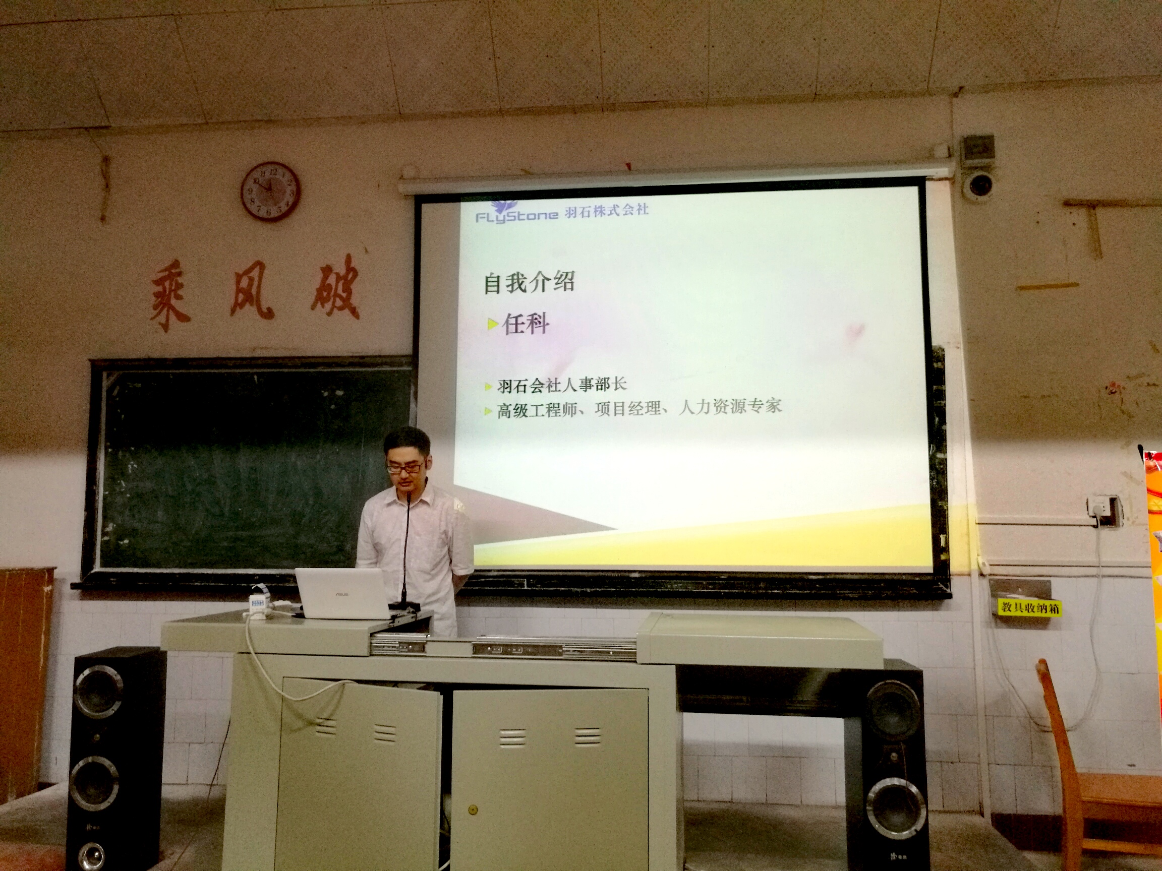宣讲会中,任科先生列出详细的数据展示了羽石株式会社的公司文化,福利待遇,详细介绍了日本的生活状况。鼓励学生选择海外发展,做不一样的自己。舒适先生围绕项目意义以及人才选拔要求两方面,向同学们再一次发出邀请并提出宝贵的建议。
