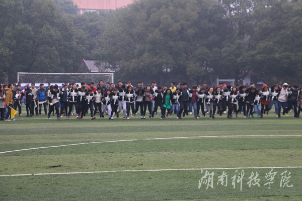 尽管天公不作美,零星的小雨似乎并未浇灭运功员们参赛高涨的热情。运动员们早早地到了比赛场地,在场地周围开始试跑准备,在各院方阵场、啦啦队精彩表演之后,比赛如火如荼地展开。比赛期间,运动员们意气风发,顽强拼搏,伴随着裁判员彩旗一挥,“一二、一二”运动员们喊着号子,向着终点奔跑。其间,有顺利地到达终点的,他们欢呼地鼓掌、拥抱,也有出现意外摔倒的,他们勇敢地爬了起来,继续与队友肩并肩战斗,最终奔向终点。来自马克思主义学院的一名参赛选手说,“运动员们虽然在训练中受了一点伤,但为了比赛,为了集体荣誉感,我们也要坚持努力地比完全程”。