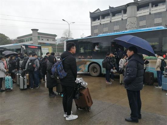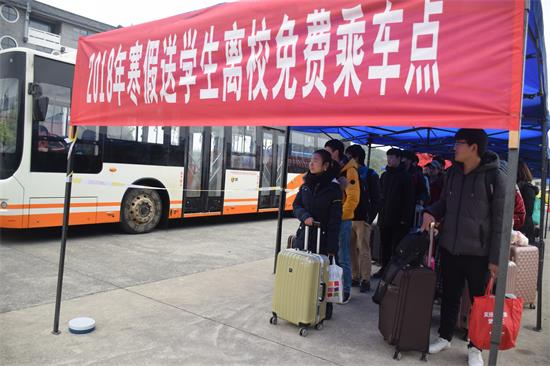 本网讯(胡敏辉邓强左璐瑶)寒假来临,春节将至,九州在线网站党委高度重视学生安全离校工作。2018年1月20日至1月24日,特租用公交巴士免费送学生至冷水滩火车站、汽车站,情暖学子回家路。