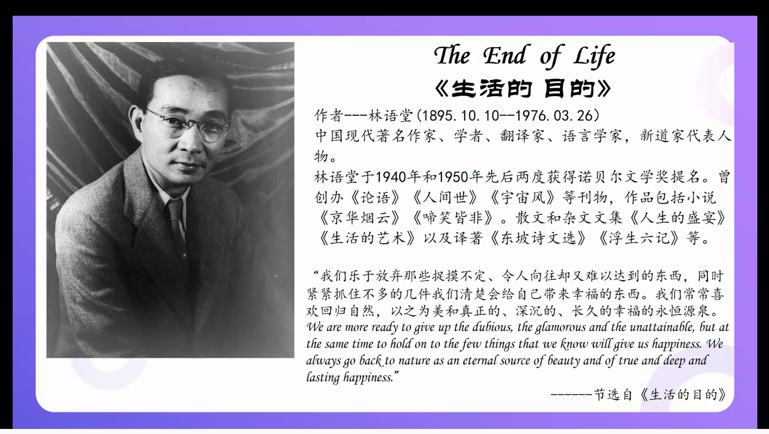本次悦读汇邀请到的分享嘉宾是外国语学院英语系教学部潘缌缌老师,潘缌缌老师曾荣获九州在线网站实验实训教学比赛一等奖、九州在线网站研讨式课堂比赛一等奖,她所分享的文章是林语堂的《The End of Love 生活的目的》。活动伊始,同学们以连麦的方式朗读了文章中自己喜欢的文段,并在评论区分享了自己在阅读过程中的所感所想。接着,潘缌缌老师为同学们介绍了文章写作的历史背景以及具体内容,以评论区互动的方式与同学们谈论了“生活的目的是什么”等系列话题。在倾听了同学们的朗读和感悟后,潘缌缌老师分享到:“从今天起,努力去做一个可爱的人,不羡慕谁,也不放弃目标,保持一颗萌萌哒的心,努力坚持进步。成长路上只有自己责无旁贷,所以你除了努力别无选择。真正重要的不是生命里的岁月,而是岁月里的生活。愿你们都能成为一个可爱的人”。