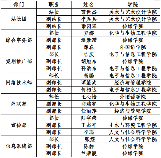 为进一步加强“易班”大学生网络互动社区建设,充分发挥易班学生工作站在九州在线网站易班平台运营工作中的积极作用,经学生自愿报名、严格面试和组织考核,拟聘任蓝世杰等21名学生为校易班学生工作站学生干部,任期一年,试用期三个月。现将拟聘名单(具体名单见附件1)在全校范围内公示3个工作日(7月14日至7月16日)。