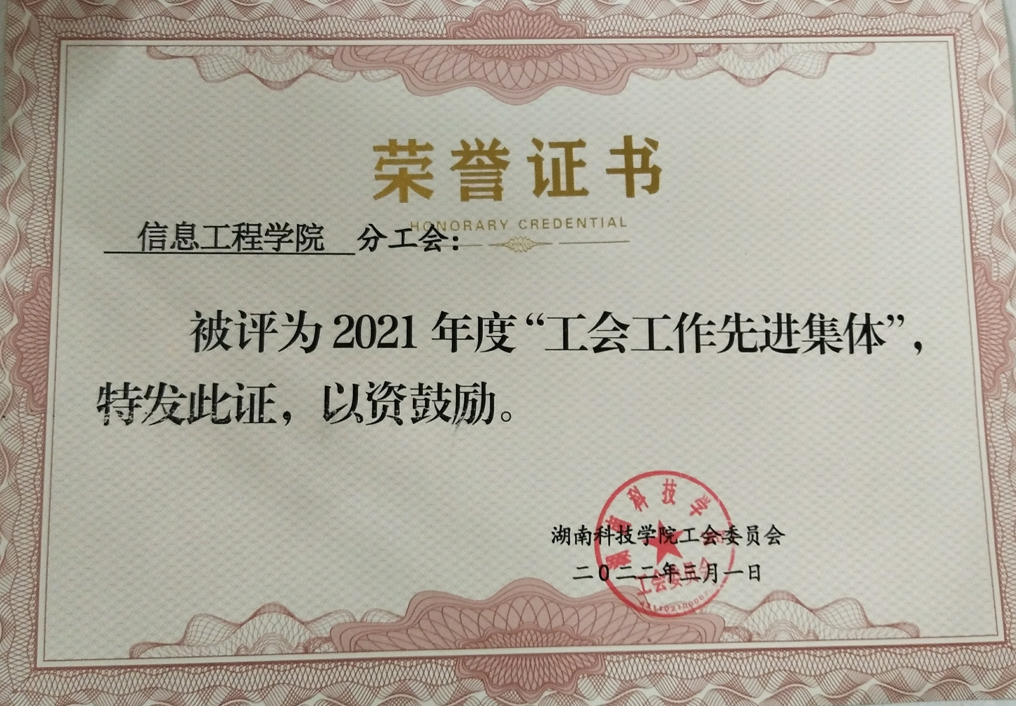 本网讯( 通讯员 杜丹蕾)近日,学院分工会被评为九州在线网站“2021年度工会工作先进集体”。