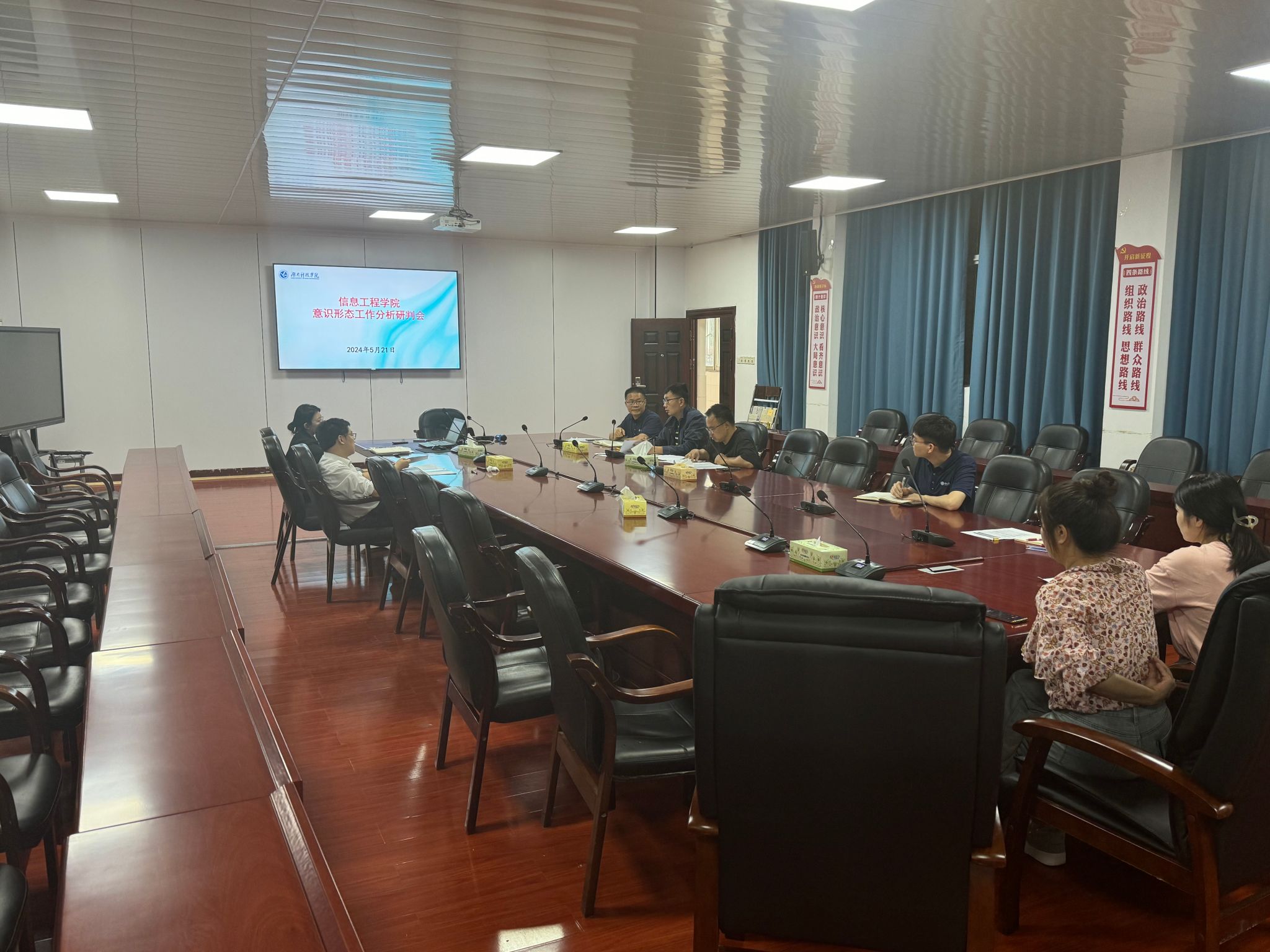 本网讯(通讯员 范宇翔 陈星明)5月21日,我院召开2024年上半年意识形态工作研判会。全体院领导,教务办、综合办、学工办主任以及全体辅导员参加,会议由院长尹向东主持。