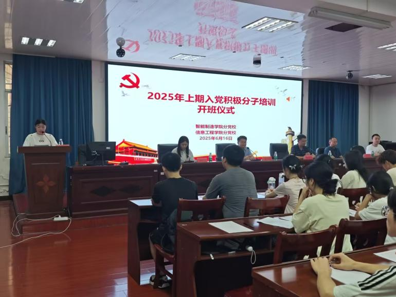 本网讯(通讯员 谢成穗 唐巧娟)6月16日,我院与智能制造学院联合举行2025年上期入党积极分子培训班。我院党总支书记罗恩韬、副书记夏汉伟,智能制造学院党总支副书记彭涛凯等参加开班仪式。仪式由彭涛凯主持。